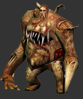 Demon Monster is a monster made out of demons’ corpse. Its right hand is long enough to be used as a whip and its left hand is used to thrust its enemies like a spear. Its mouth is at the center of the chest and eats the meats with it. But it doesn't have any eyes or nose. It's just a living weapon made only for assault.