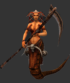 The final boss monster of Picture of Hell_Soo-Ra; tears its enemy's body into pieces with a large scythe; uses scythe attack stuns the enemy and also uses poison explosion.