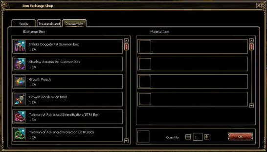 | Infinite Doggebi Pet Summon box | Soul of Oblivion | 40 | Monster Soulstone | 10 | Mystical Powder | 5 |