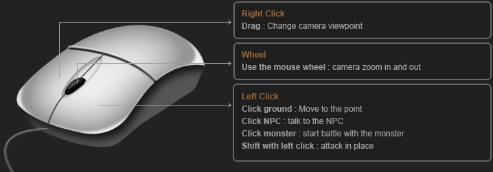 4. Quick slot : press 1-0 number keys to use skill in quick slot