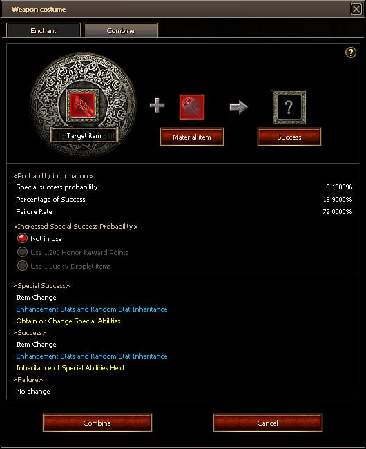 The weapon costume enhancement/Combine system allows you to obtain more efficient weapon costume enhancement options