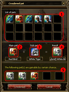 4) When the hybrid pet is given to inventory after crossbreed, main pets and sub pets for the process will be deleted.