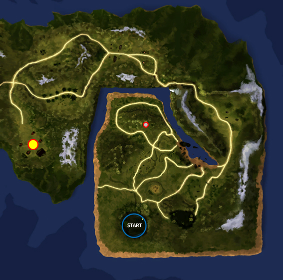 The gray spot is where the Imokdo Dragon (mid-boss) monster appears, and the yellow spot is where the thousand-year-old Imoogi (boss) monster appears.