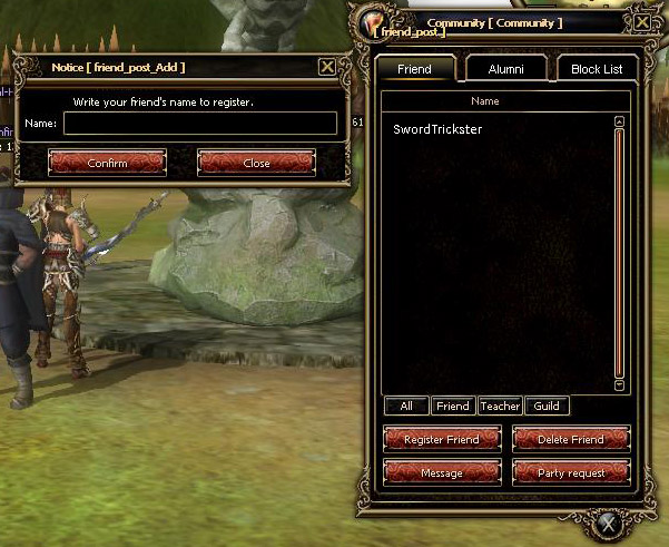 - You can delete list of your friend by using deleting key (Key: /deletefriend character name)
