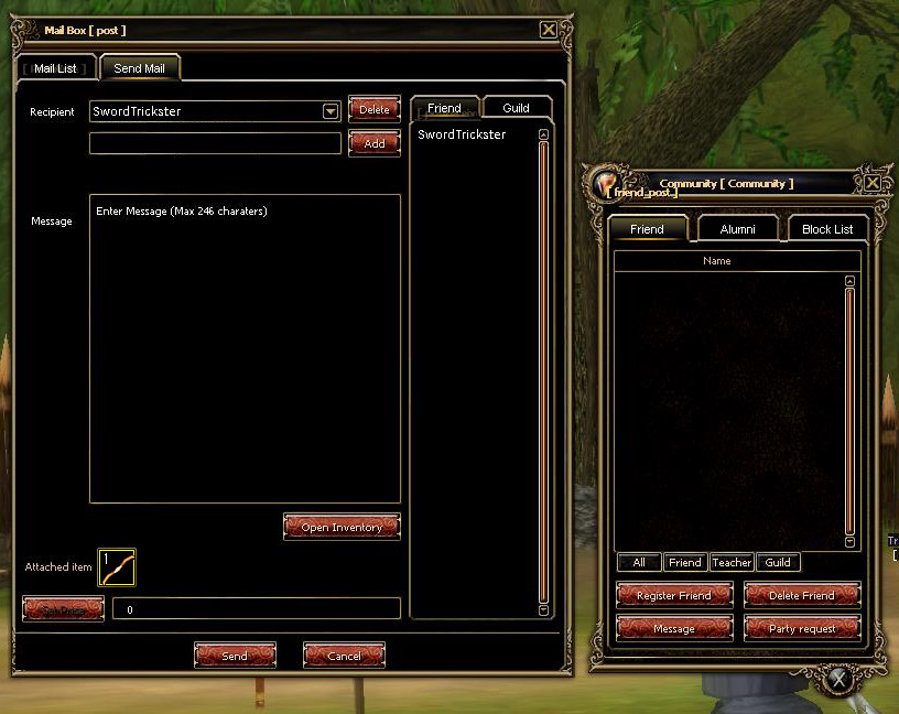 - Parcel : You can attach items in your Mail and ask for Zamogeon later on.