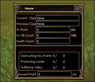 You may check your honor points and reward points from honor window by pressing ‘V’. It’ll display the information of your class, honor points, reward points, and etc.