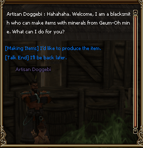 - You can produce with Artisan Doggebi NPC