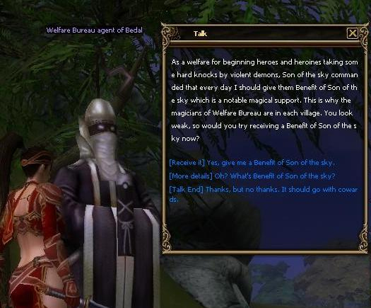 - Only 1-60 level of character can get a buff from [Welfare Bureau agent of Bedal] NPC.