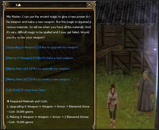 (another weapon, armor, and elemental stones) through the Mix Master.
