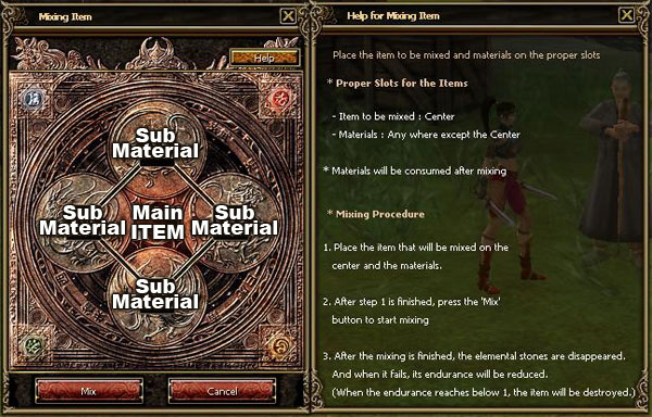 3. When mixing is failed, main weapon item's endurance will be decreased (5~10). If the weapon's
