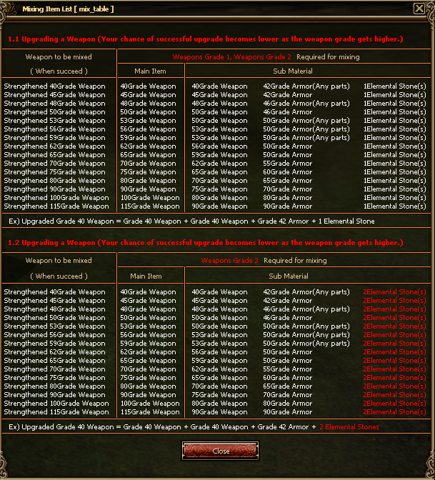 2. Mixing weapons only can be done on the Grade 40 or higher Grade of weapons.