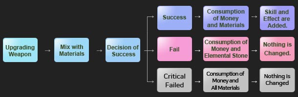 ※ Mixing with rare materials only can be done when the weapon is reached 2nd level.