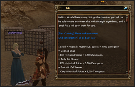 1 Cooked shad | 25,000 zamogeon spend, increases maxium Health Point and Magic Point by 500 for 1 hour. |