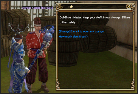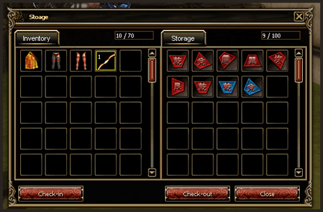 * All characters in a same account can share their items in the storage.