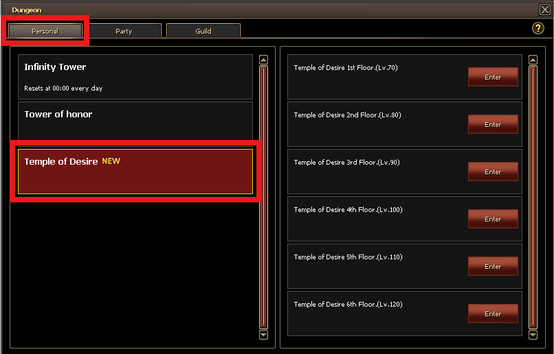 The Temple of Desire is a premium dungeon, accessible through both personal and party dungeons.