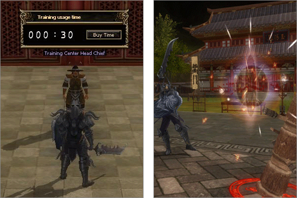 - When a character hit one of a wooden doll, [Training Center usage time] will be deducted and started a training.