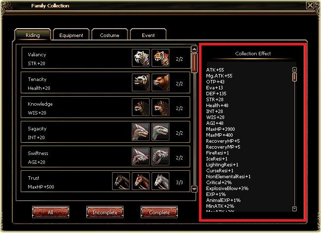 -When you complete Family Collection System, the ability of Family Collection System is applied to the character.