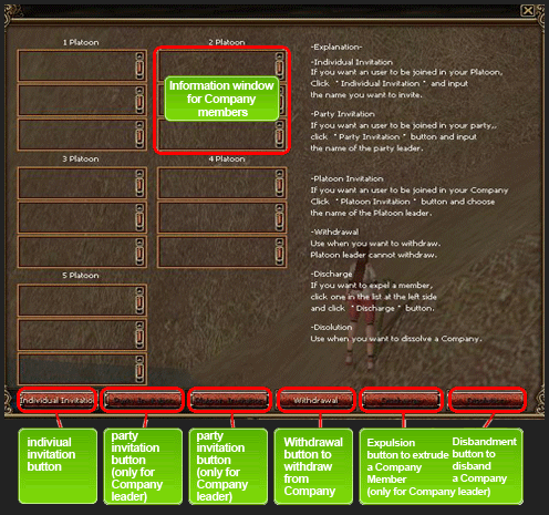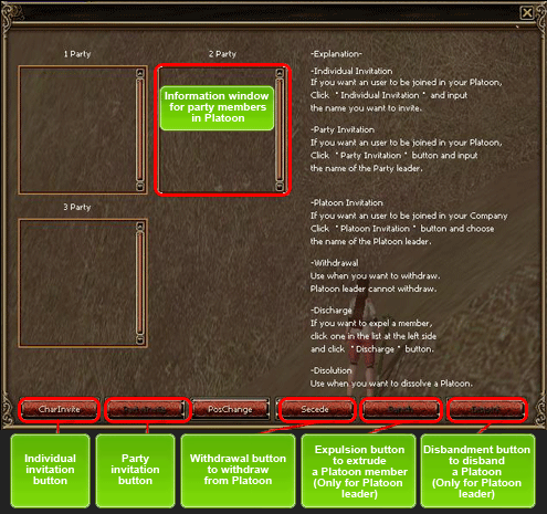 5. Any member in Platoon can invite a player, who is not in any other party, Platoon, Company.