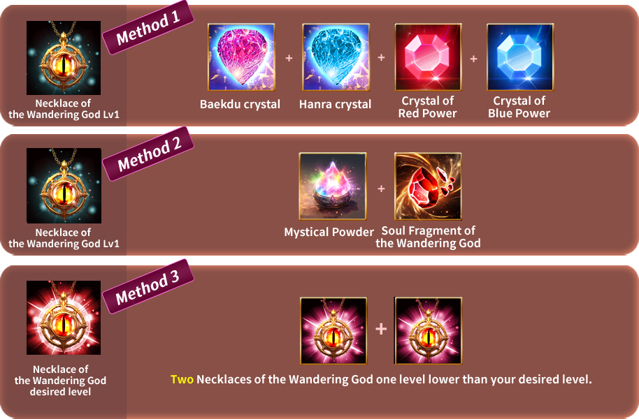 Ex) Necklace of the Wandering God Lv7 requires two Necklaces of the Wandering God Lv6.